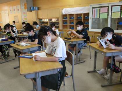今年度、火曜日と木曜日の朝は読書の時間です。心を落ち着かせて、集中して本を読んでいました。