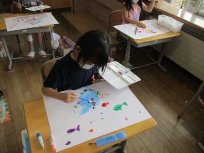 本日は、とても暑い一日になりましたが、2年生は、暑さに負けず、元気いっぱいに過ごしています。音楽でリズムに合わせて手をたたいたり、体育でけんけんぱをしたり、図工で絵を描いたり。みんな笑顔いっぱいに活動していました。
