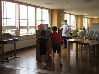今週、いくつかの学級は特別教室で学習をしていました。暑くなり、クーラーをつけるようになったことから、それらの学級は来週から自分たちの教室に戻ります。できる限り机と机の間隔を空け、熱中症予防と感染防止に気を付けながら学習していきます。