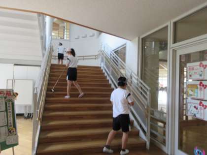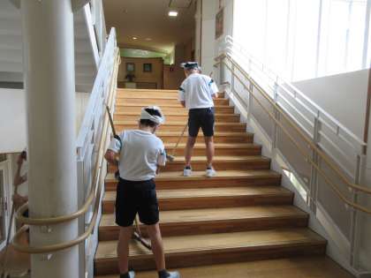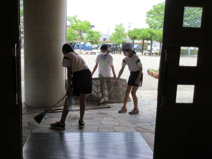 今、全校の子供たちは清掃をせず、自分の身の回りのゴミ拾いのみ行っています。清掃の上手な6年生が玄関や階段などをほうきで掃いてくれています。6年生の皆さん、ありがとう。