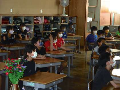 朝活動の時間、テレビ放送で「光陽スタンダード」と「すてきな光陽っ子」の話を聞きました。