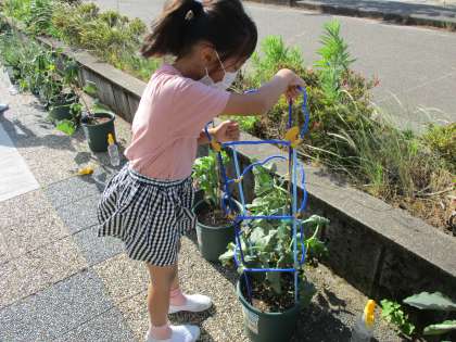 毎日欠かさず水やりをしているので、どの子供の野菜もぐんぐん生長しています。