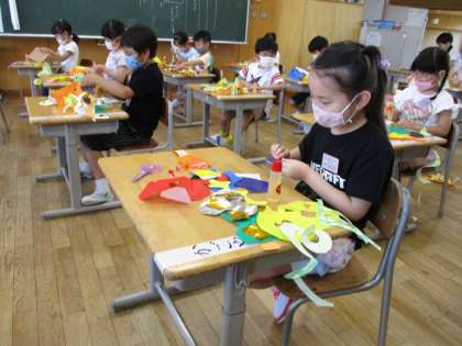 図画工作科「ちょきちょきかざり」も、いよいよ完成に近づいてきました。