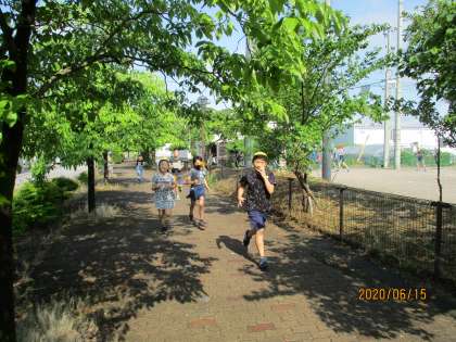 密を避けるため、1学年ずつ、週に1回の外周走がスタートしました。朝の少し涼しいうちに体を動かすことで、気持ちよく1限をスタートすることができます。