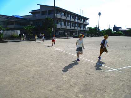 朝のグラウンドを懸命に走る子供たちの姿はとても爽やかでした。