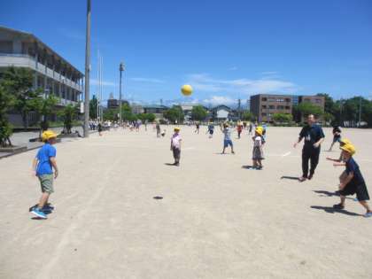 今日は天気がよかったので、のびのびタイムにグラウンドで元気に遊ぶ子供の姿がたくさん見られました。先生を交えてドッジボールをしたり、技7の達成に向けて鉄棒の練習をしたりと、みんな楽しそうに休み時間を過ごしていました。