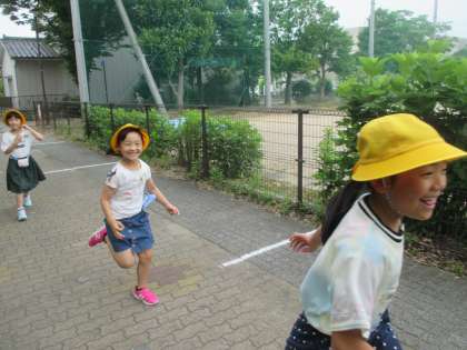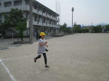 5メートルの間隔を意識しながら、自分のペースで一生懸命走り、体力づくりをしました。「先生!今日は6周したよ!」と誇らしげに教えてくれる子供もいました。
