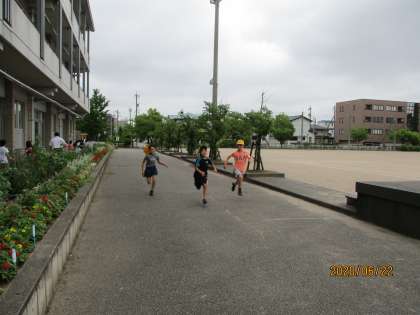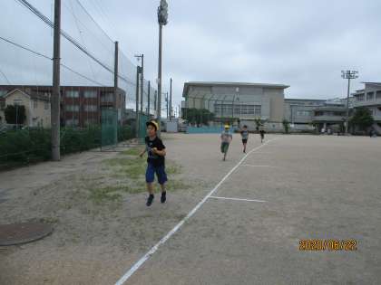 あいにくの曇り空でしたが、今朝も一生懸命外周走に取り組みました!!