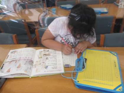 国語の学習で自分の調べたい職業を選び、本で調べています。しかし、なかなか調べたいことが載っている本が見つからない子供もおり、四苦八苦する様子が見られました。「本だけじゃ、調べることは難しいよ」「実際に人に聞いた方がいいよ」という意見が出てきたので、これからインタビューをすることになりました。校内の先生やお家の方等にインタビューをする準備をこれから進めていこうと思います。