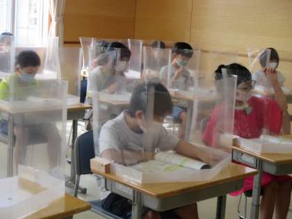 今日から音楽室に、ついたてが設置されました。