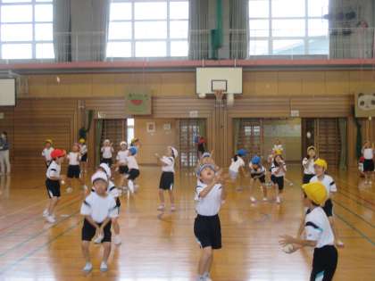 今日の体育の学習では、動物のまねをしたり、くしゃくしゃにした新聞紙のまねをしたりする表現運動をしました。表現力豊かな子供たちは、体をいっぱい動かして、上手にまねをしていました。また、お手玉を使い、片手でキャッチする運動も行いました。おうちでも簡単にできるので、是非ともお試しください。