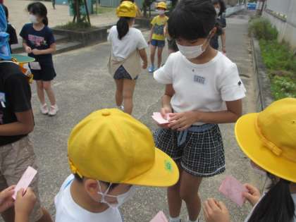 栽培委員会主催の「ラベンダー祭り」があり、3年生の子供たちはたくさんのラベンダーの花をお土産にもらってきました。「いいにおいがする!」「疲れたときにリラックスできる」と、子供たちは何度も香りをかいでいました。