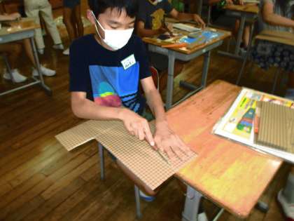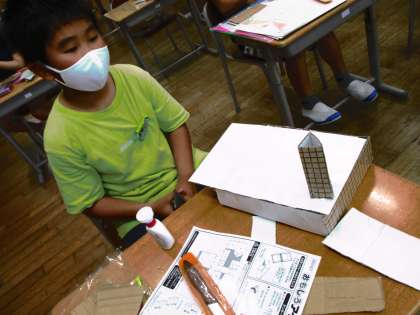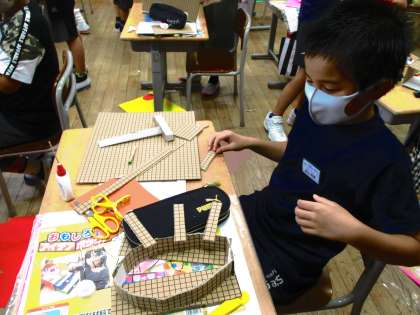 初めて段ボールカッターを触る子供がほとんどでしたが、だんだんと扱いに慣れてきたようです。段ボールカッターを細かくゆっくり動かしながら、思い描く形に丁寧に切り取っていました。