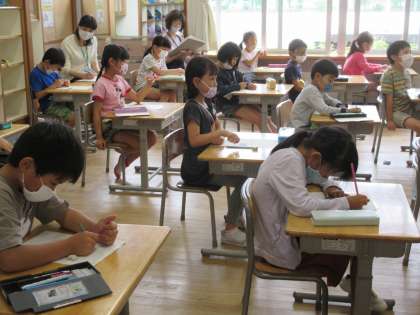 2年1組で道徳科の公開授業を行いました。嵐にも関わらず、病気のリスのところに小鳥がぐみの木の実を届けるお話です。一生懸命小鳥の気持ちを考えたり、役割演技をしたりして、「親切にすること」について考える子供たちでした。