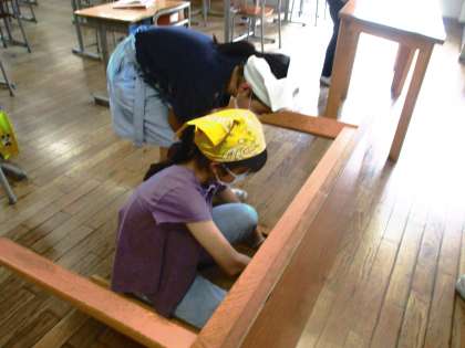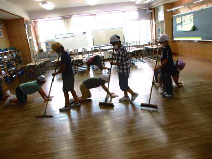 それぞれの担当場所へ行き、一生懸命掃除する子供たち。