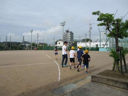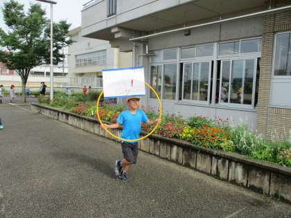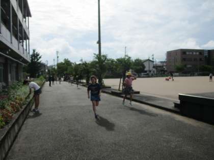 毎週月曜日は朝のトレーニングの日です。5年生の朝トレの日は、晴れることが多いです。運動・安全委員会の子供たちは、仕事をしながら走っています!