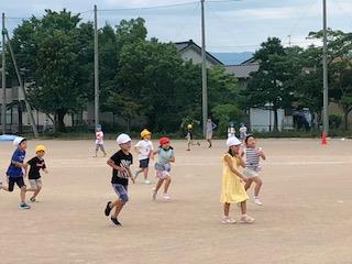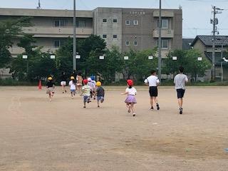 6年生が1年生を誘い、朝のトレーニングでグラウンドを走っています。「○周走ったよ!」などと、自慢げに報告してくれる子供もいます。これからも、感染防止と熱中症予防に気を付けながら、体力を付けてほしいと思います。