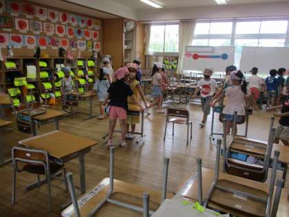 時間になると、「掃除が始まるよ!」「オッケー!」