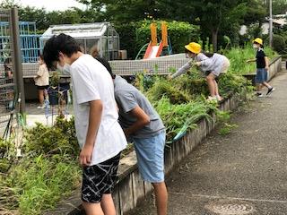 毎朝、栽培委員会の子供たちが花壇やにこさわ広場のプランターの除草をしてくれています。たくさんの草をどんどんむしったり、黙々ときれいにしたりしています。
