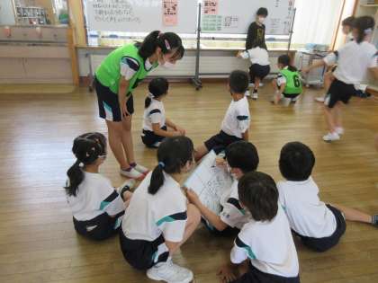6年生が事前に遊びに使うものを準備しておいてくれたり、こまめに水分補給を呼びかけたりしてくれました。おかげで安全に楽しく遊ぶことができました。