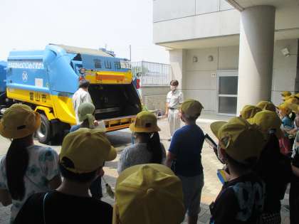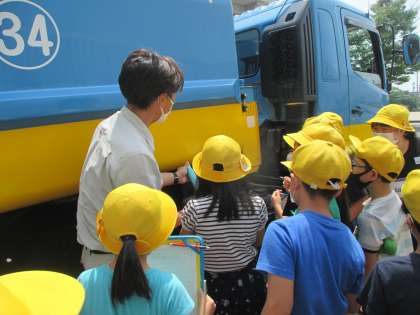 懸命にメモをとりながら、収集車を見学したり、リサイクルの話を聞いたりしました。