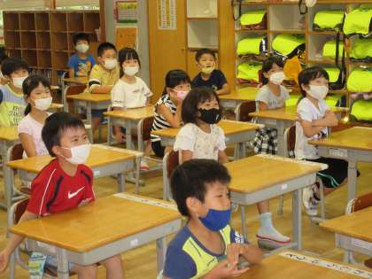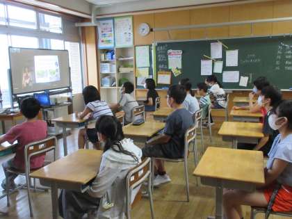 1学期終業式を行いました。今回は「Zoom」を用いて、会議室にいる教職員も子供たちの様子が分かるようにして行いました。子供たちは大変集中して式に参加していました。