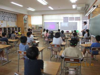 始業式で校長先生のお話を聞きながら、「2学期どんなことを頑張ろうかな」という思いをもった子供たち。たくさんの行事がある2学期、子供たちの成長する姿を見るのが楽しみです!!