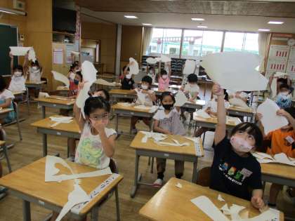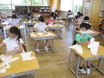 今日の図画工作科の時間は、思い切り紙を破き、その形を見ながら、
