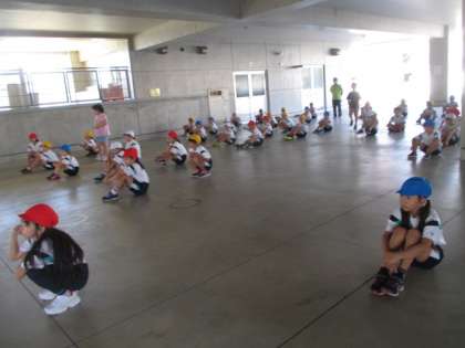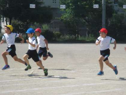 今日も運動会での徒競走の練習を行いました。並び方をピロティで確認した後、ウォーミングアップがてら本番のコースを使って走りました。