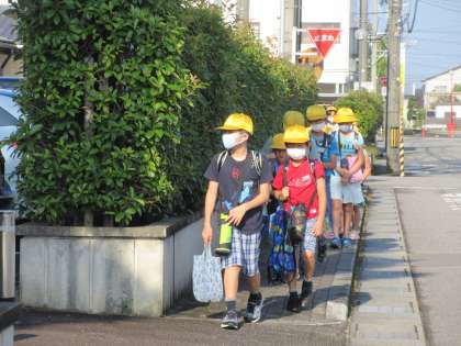 8月も今日で終わりですが、まだまだ暑い日が続きます。熱中症予防のため、子供たちにはグラウンドや体育館で思い切り運動したり遊んだりすることができない日がもうしばらく続きそうです。多目に水分を持参する、日傘を活用する,登下校時は十分な距離を取ってマスクを外すなど、学校でも熱中症予防策について指導しますが、ご家庭でもご指導くださいますよう、お願いします。