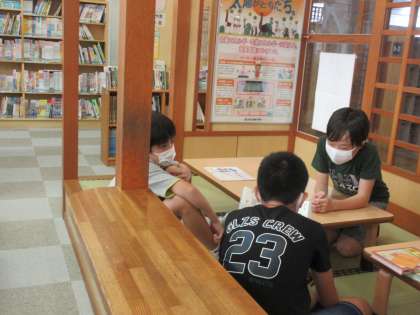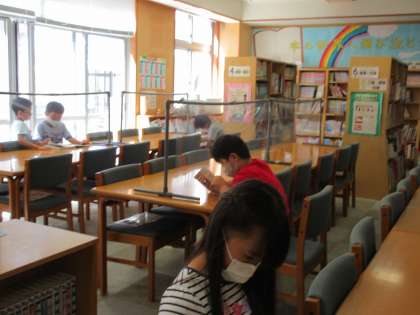 暑い日が続き、休み時間にグラウンドや体育館で思い切り体を動かして運動したり遊んだりすることができない日々が続いています。大休憩の時間、体を動かして遊ぶことができない分、図書室で静かに本を読んだり借りに来たりする子供が多いです。図書委員の子供が入室人数を制限したり子供たちに間隔を空けて並ぶように声を掛けたりしてくれています。この機会にたくさんの本を読み,その世界に浸る楽しさを味わってほしいです。