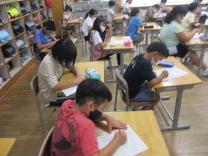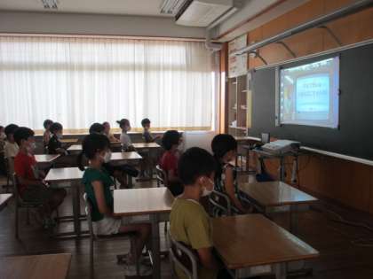 全校一斉に、細野先生から「コロナウイルスに負けない心と体について」話がありした。その後各クラスでも話をしました。みんなで普段の生活や言動を思い返し、これからどのようにしていきたいか考えています。