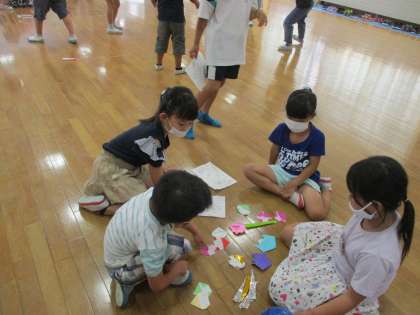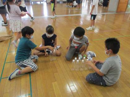 ペットボトルボーリング、風船遊び、宝探しゲームなど、