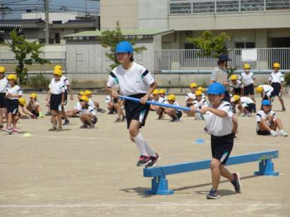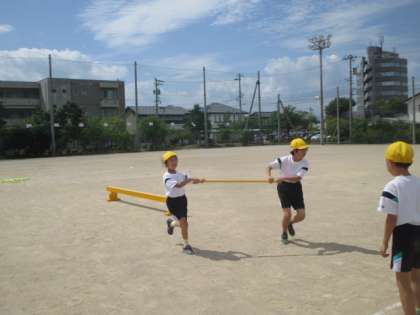 今日は5年生と一緒に取り組む競技、「バランス玉入れ」を実際にやってみました。ペアになった5年生と心を合わせて棒を運んだり、玉入れのかごに上手に玉を入れたりするのはなかなか難しいですが、声を掛け合いながら一生懸命走る姿が見られました。本番は何団が勝つのでしょう?がんばりましょう!