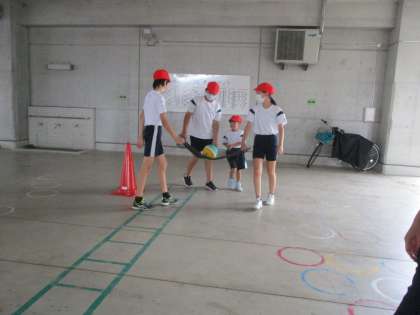 今日は、6年生と一緒に、運動会団体戦「マンタにのせて〜運び名人はどのマンタ?〜」の練習に取り組みました。