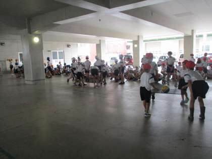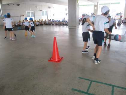 1年生と4人一組で、ボールを運びます。1年生の様子を気にかけながらスムーズに運ぼうと一生懸命でした。