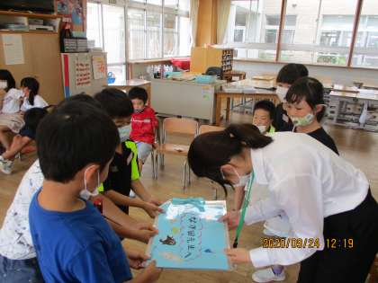 今日、永田先生の2年1組での教育実習最終日でした。子供たちは、毎日一緒に勉強をしたり、遊んだりして永田先生のことが大好きになりました。約3週間と短い時間でしたが、子供たちはたくさんの楽しい思い出をつくりました。永田先生、お疲れ様でした。
