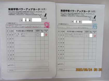 水曜日から家庭学習パワーアップ週間が始まっています。子供たちは、5年生の家庭学習の目標時間「50分」を目指して頑張っています。涼しくなり、少し過ごしやすくなった今、落ち着いて学習に取り組めるといいですね。