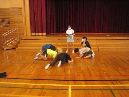 練習にだんだん熱が入ってきました。全身で表現する子供たちです。