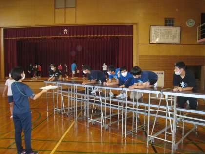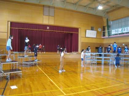 舞台を出し、実際に動きを確認しました。より迫力が出るようにするにはどうしたらいいか考えました。