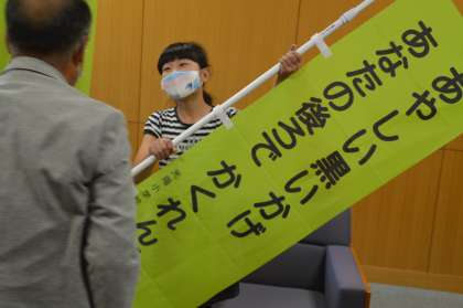 「桃太郎旗」は児童玄関前に飾ります。光陽っ子にはこれからも安心安全な町づくりのために自分にできることに取り組んでほしいと思います。地域の方々には、光陽っ子をいつも見守っていただき、ありがとうございます。