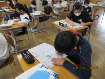 倍数や約数、分数のきまりで学習した知識を総動員(!)して、通分・約分の学習を頑張っています。特に約分を忘れてしまうミスが多いです。たくさん練習して慣れていきましょう!