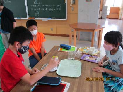 1組は「流れる水のはたらき」、2・3組は「物のとけ方」の学習をしています。どの学習も、生活経験を大切にして予想を立て、実験方法を考えながら学習を進めています。