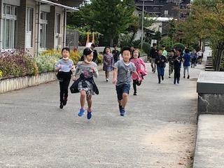 今週から朝の体力づくりを再開しています。随分涼しくなり、爽やかな秋空の下、元気にグラウンドを走る子供たちです。