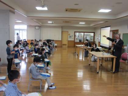 光陽小学校ができるまで、そして、光陽小学校ができてからについて詳しく教えていただきました。壁や扉のない学校にした理由や、体操服をどれにするかを投票してもらったことなどを知り、子供たちはとても驚いていました。改めて自分たちの通っている光陽小学校を大切にしたいという思いが高まった子供たちでした。