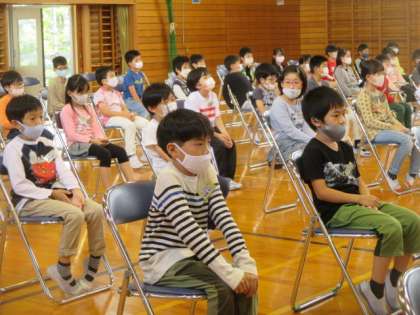 今日は、4年生の発表を見せてもらいました。始まった瞬間からきらきらした目で4年生を見つめていました。