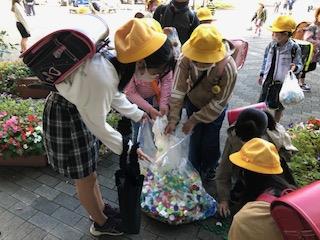 エコキャップとアルミ缶を回収する日です。光陽っ子が今日もたくさんのエコキャップやアルミ缶を持って来てくれました。お世話をしてくれるユネスコ委員会の皆さん、持ってきてくれた光陽っ子の皆さん、ありがとうございます。