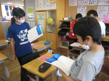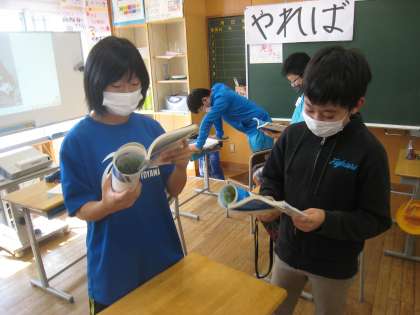 やまなしの学習をしています。音読を通して宮沢賢治の作品に慣れ親しみました。