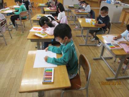 1年生の図画工作科では、「のってみたいな いきたいな」の学習に取り組んでいます。