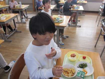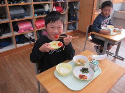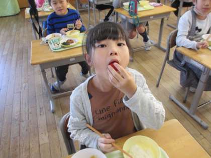 今日の給食にフルーツトマト「フォレストフルティカ」が出ました。このトマトは廃棄物を焼却する際に発生した熱を利用して発電し、その電気を照明や空調に使ったビニールハウスで栽培されています。大きくて甘いトマトに子供たちは大喜びでした。
